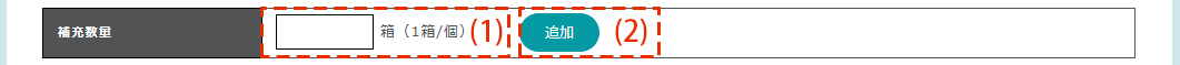 | (1)補充数量 | 補充リストに追加する数量を入力できます。 (すでに補充リストにある商品は、変更する数量を入力してください。) |